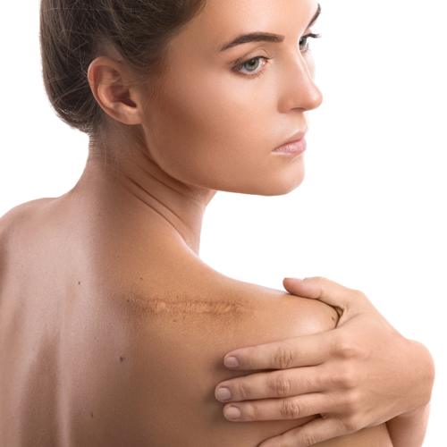 A cicatriz é uma sequela causada por traumas, como: cirurgias, machucados, queimaduras e acne. Em alguns casos, podem desenvolver também, a queloide, que é uma protuberância derivada do excesso de colágeno na cicatrização.